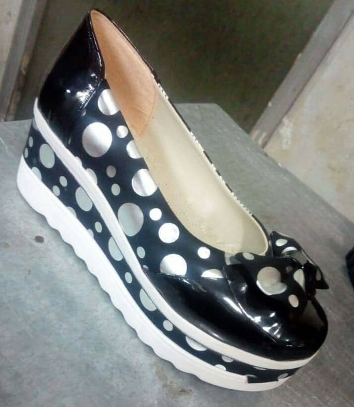 حذاء كعب عالي منقط الوان اسود نبيتي كحلي