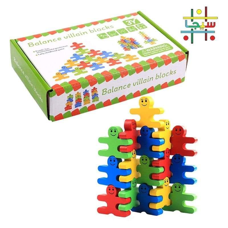 توازن مجسمات عبارة عن 16 قطعة مجسم شخصيات خشبية يمكن ترتيبها معا لتحقيق توازن فيما بينها وعمل العديد من الاشكال بها